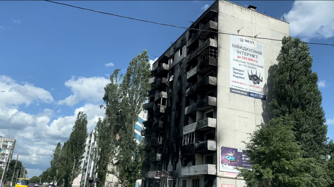 Бородянка - один з найбільш зруйнованих населених пунктів в Київській області. Після в'їзду на розв'язці з Вокзальною на Центральну вулицю селища, де розташовані житлові та адміністративні будівлі, кафе та ресторани, відкриваються величезні масштаби руйнувань, спричинені російськими обстрілами та бомбардуваннями. Центр Бородянки перетворився на руїни.